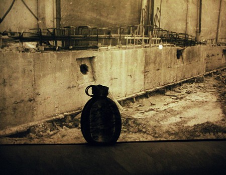 Thus, each image can be conceived as alluding to different "texts". The vague figures of the workers may be "read" as workers of the fifties, as representatives of the developing state of Israel or of some kind of socialist vision. As such, they seem to revive recollections of old documentary films. At the same time, these figures may evoke thoughts about soldiers, wars and war movies, thus simultaneously alluding to processes of construction and destruction. In addition, the conjunction of these figures with other "grafted" elements widens the scope of the possible meanings, undoing any clear univocal interpretation. For example, Mitchell's dancer gains a new space for his performance within a new context. At the same time, he seems to be threatened by a machine apparently directed toward him. While he is "hovering" close to the lower border of the work i.e. the lowest ground level, the other images, which are essentially linked to the earth, seem to "float in the air". Thus the dancer raises thoughts about the dynamics of the whole work. The observer conceives him, an artist and an artistic creation, as a component of an apparently non-artistic surrounding. At the same time, the construction site is inspired by the world of art. Furthermore, it seems that the work as a whole can be read as a possible installation whose components are removable. Nevertheless, the contingency of the coexistence of the different worlds is emphasized.