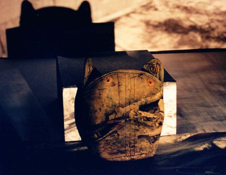 The folded piece of fabric may also convey various connotations: it suggests a shrouded corps, but yet, it seems to be full of life. At times, it reminds one of an old rug, but yet, another "reading" interprets it as a canvas for painting, bringing to the fore meta-artistic questions. Another approach contextualizes this object within the art-world of the twentieth century, linking it to Christo's artworks.